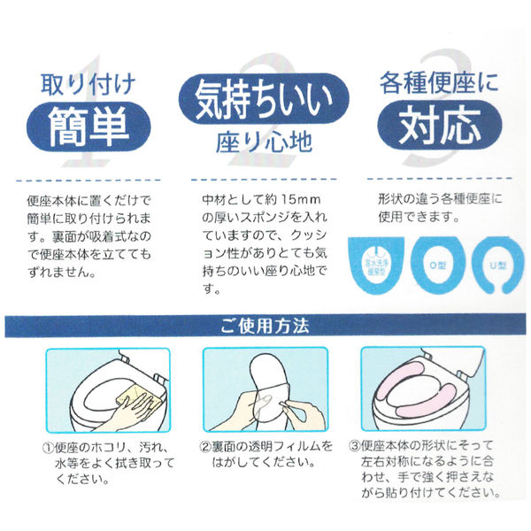 便座に貼るだけで簡単に吸着し、便座を立ててもズレ落ちません。洗濯機でくり返し洗えます。便座の型に合わせて、余分な部分をハサミでカットできます。暖房便座の電源OFFでも、お尻が冷たくならず、節電対策ができます。